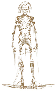 These undead beings are similar to intelligent zombies. Some cults keep mummies in their temples as guardians. Like zombies, mummies must be hacked apart to make them cease action. Contrary to popular belief, many mummies lack bandage wrappings and can move relatively swiftly. Some mummies cannot naturally regenerate magic points.